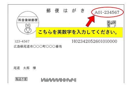 ※交付通知書番号とは、交付通知書(ハガキ)の右上または左上に記載された3桁-6桁の英数字(数字のみの場合もあります。)のことです。